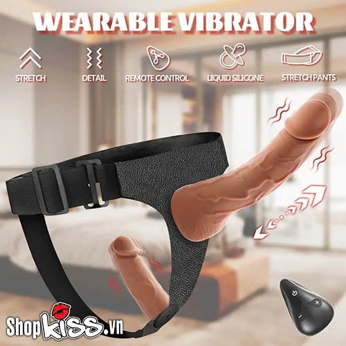 Tên sản phẩm: Đai đeo có 2 dương vật rung thụt Yeain Double Wings
