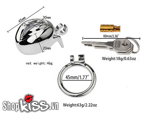Sản phẩm được thiết kế theo dạng khóa trinh tiết với một vòng chặn bìu dạng trơn, đường kính 45mm. Kích thước này phù hợp với đa số nam giới châu Á, giúp cố định khóa dương vật một cách chắc chắn. Tuy nhiên, vòng trơn vẫn đủ rộng để mang lại sự thoải mái, không gây cảm giác đau đớn hay chèn ép khó chịu khi đeo trong thời gian dài. Đây là chi tiết nhỏ nhưng đóng vai trò quan trọng, vừa đảm bảo yếu tố an toàn, vừa tạo sự yên tâm cho người sử dụng.